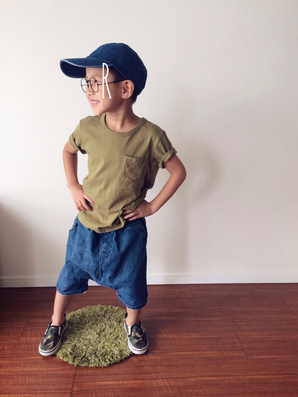 カーキTシャツをデニムでサンドイッチ。 どこで見たのか骨盤体操中。 しかも回転がやたら早い。笑 ☁︎ ☁︎ ☁︎