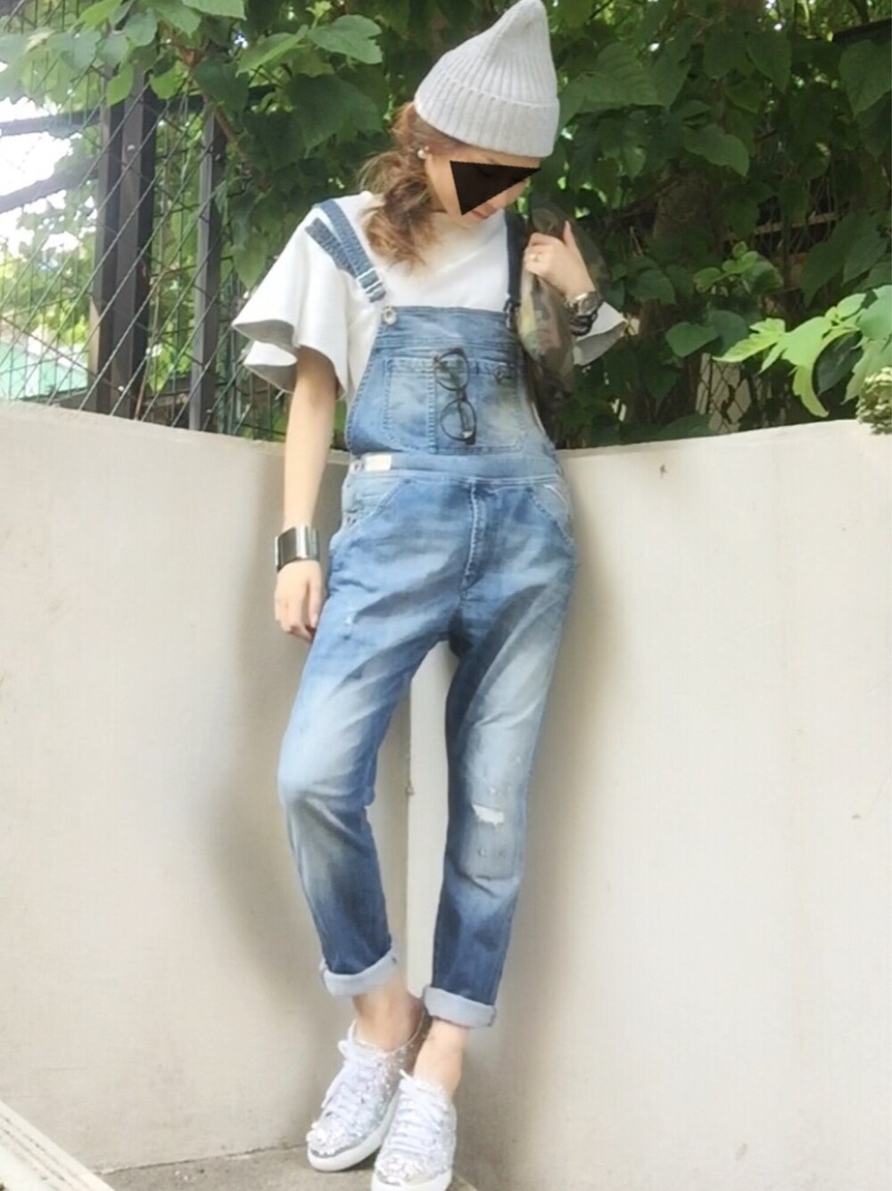 白×グレー×デニム⋆*✩⑅◡̈⃝* +シルバー&カモフラ ピアスのキャッチはパール◎ トップスは袖の内側がグレーなのに惹かれて数年前に購入❁ (※今も同じの作ってるぽいのでタグ付けてます。)