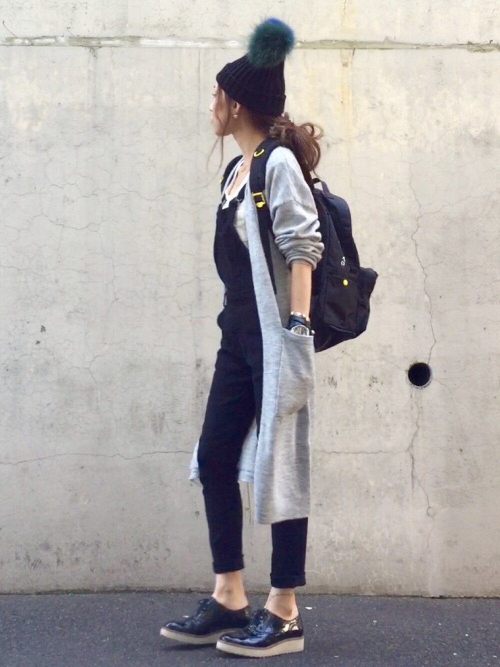 モノトーンでロングカーデ×サロペ◡̈⃝⋆*