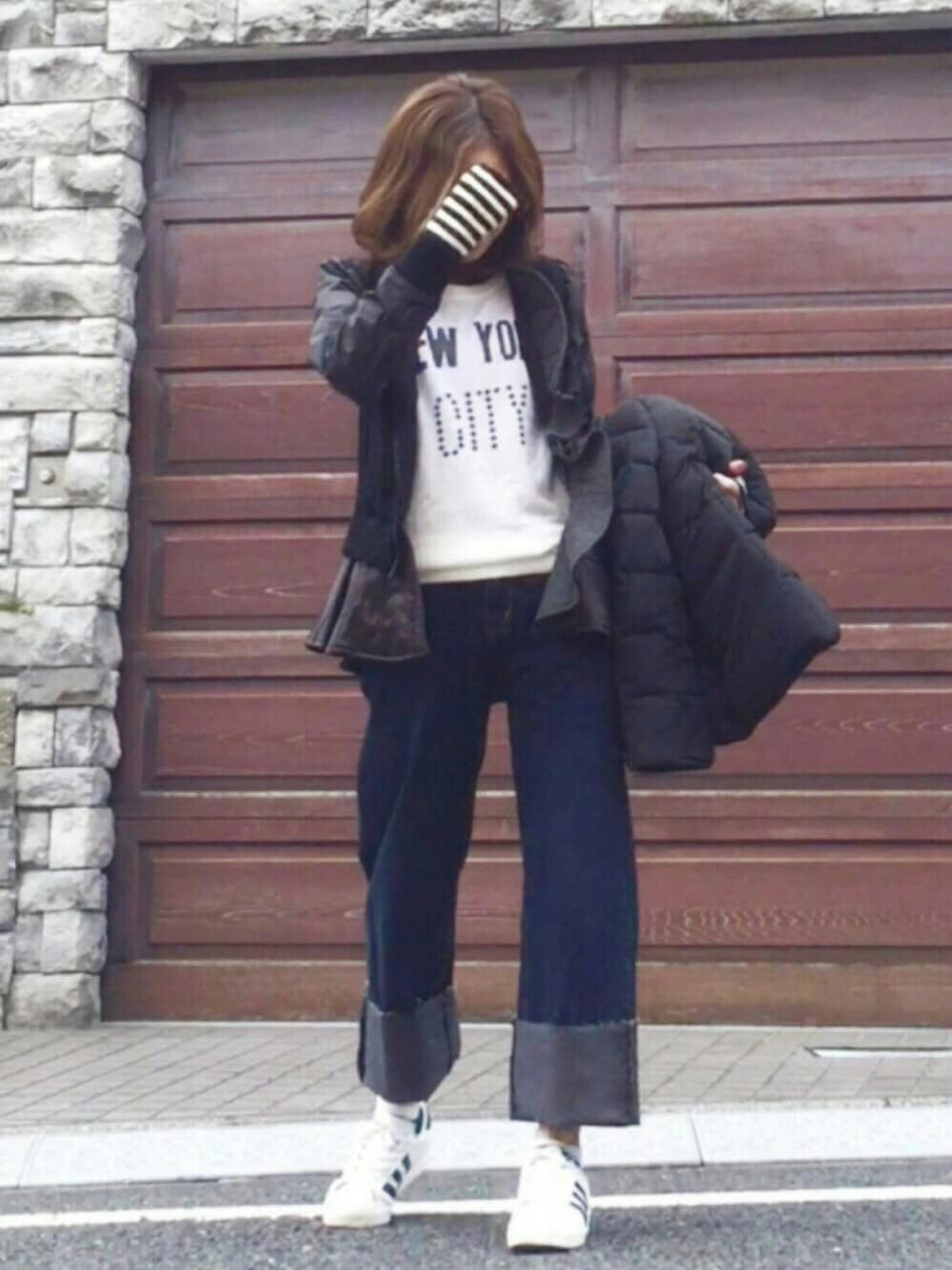 Kieのとこで買ったデニム👖♡ ×MA-1で春先もいけそうなコーデ♩ …でも寒波に負けて上からダウン😂w