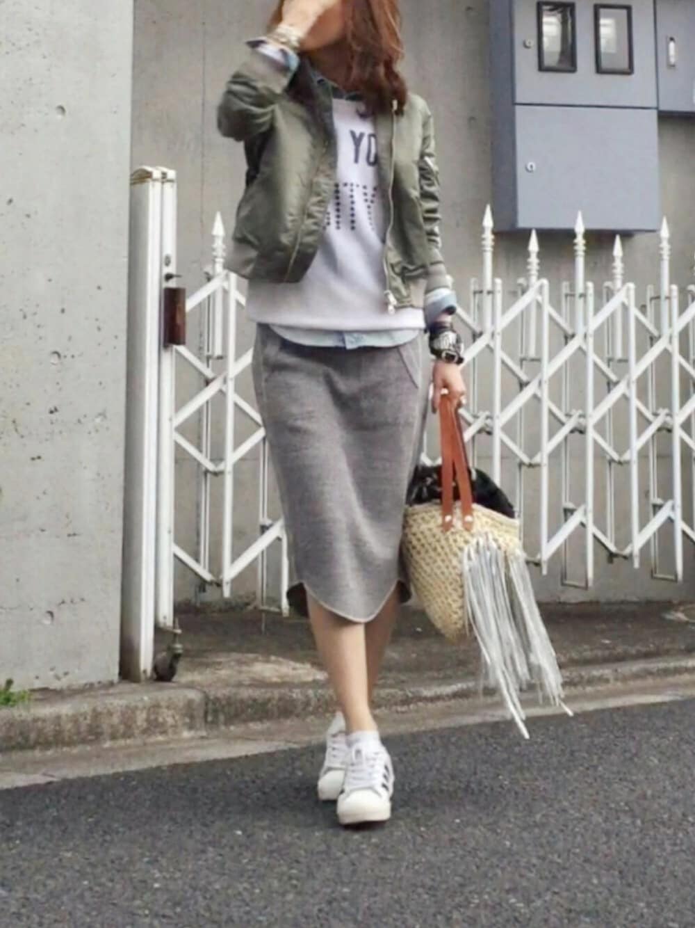 淡いトーン◡̈❁◌ ͙❁˚ スカートがワッフル素材なのと、バッグのフリンジがシルバーなのがツボ♡
