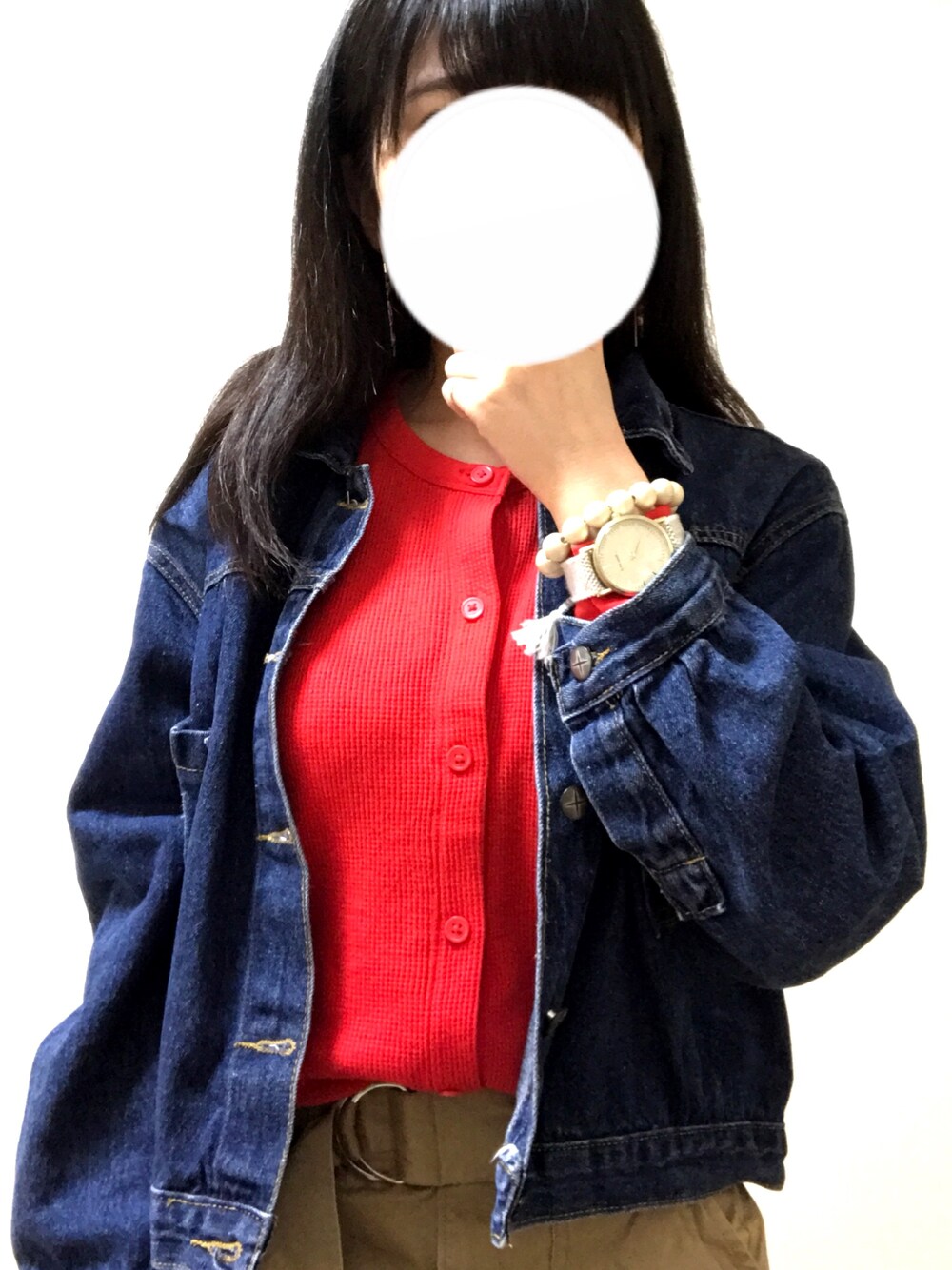 赤のカーディガンをポイントにコーディネートしてみました! 最近ハマっているこの腕時計💓 お出かけの時は絶対付けてます