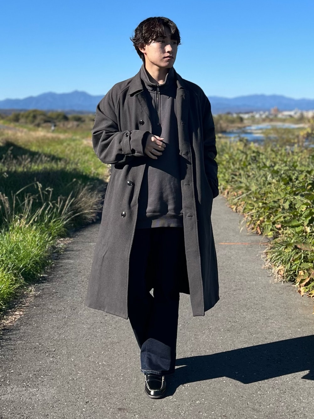 Mugくん【きれいめカジュアル】のステンカラーコート「【CLEL】TR Loose Soutien Collar Coat / TR ルーズ ステンカラーコート」を使ったコーディネート