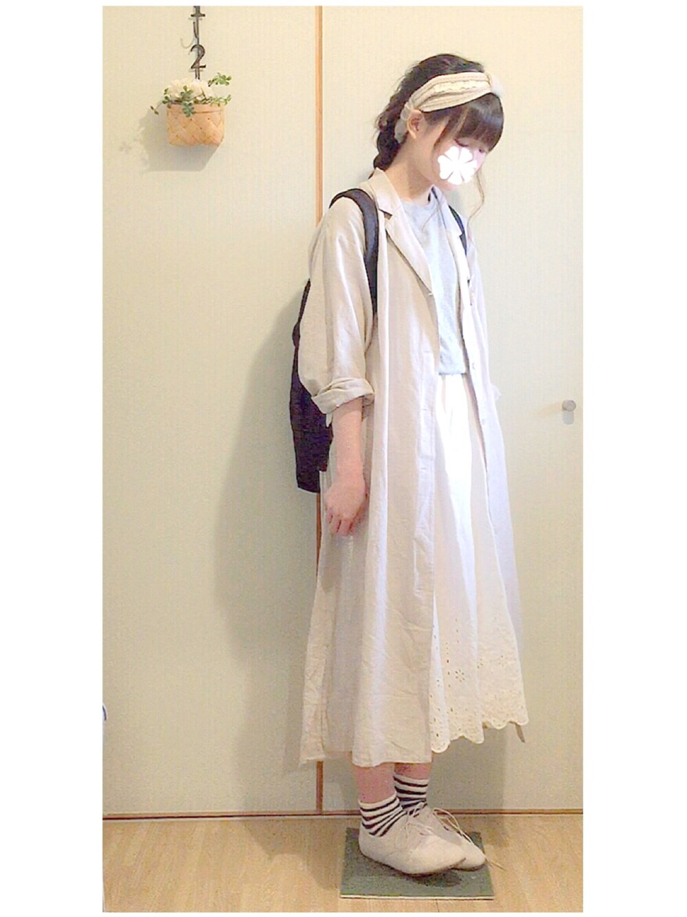 今日もベージュ * ユニクロの羽織りは、 フォローしてる だいちゃんくんが着てて、 つられて買ったもの 。笑 長袖だけど 夜はまだ寒いし、 薄いリネンでちょうどいい 〜( ˆoˆ ) 洋服が無地なので、 靴下にボーダーをいれました ⚐