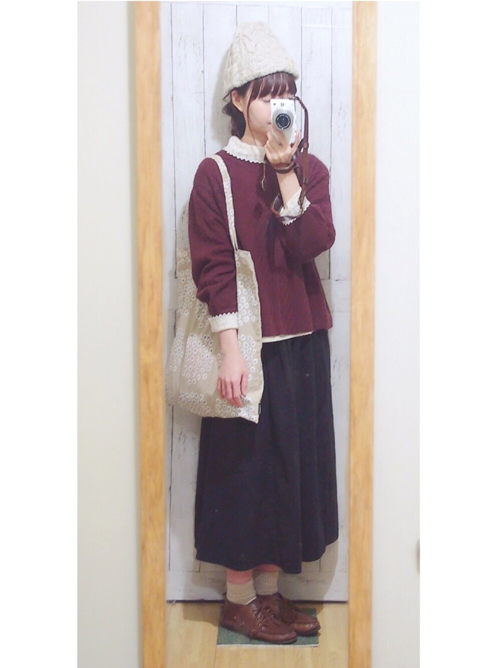 今日は この前の黒スカートに ボルドーのニット ♩° いつもはあんまり着ない 色味の組み合わせでした \( ¨̮ )/ タートルブラウス、 シンプルな時とかに ついついよく着ちゃいます (・-・)♡︎ʾʾ