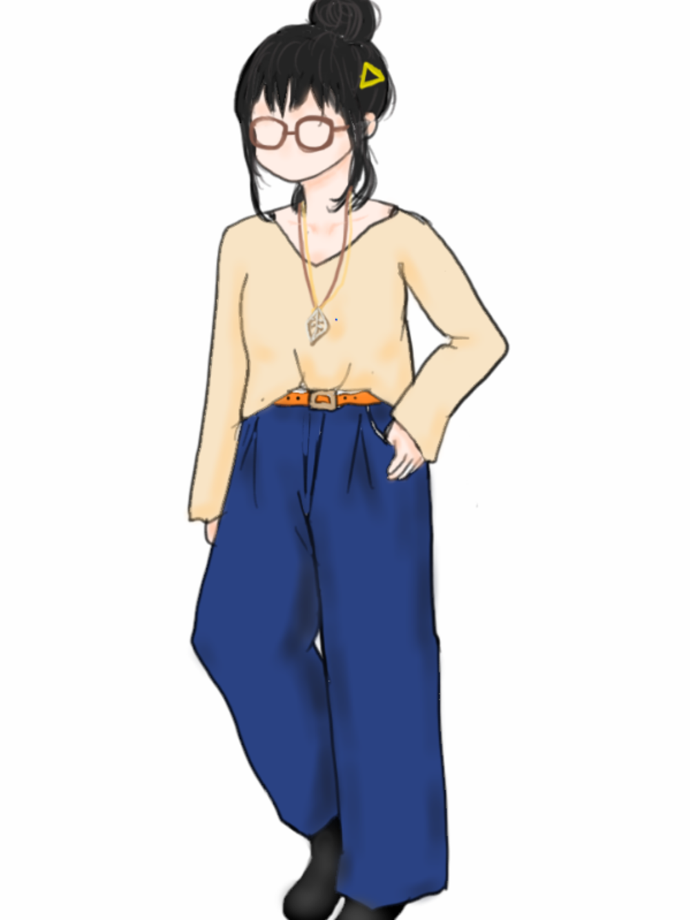 写真を撮るのを忘れたので、イラスト。 美化ですね(A;´・ω・)アセアセスミマセン Vネックニットで女性らしさを... ワイドデニムでカジュアルに。 お団子ヘアーにして、縦ラインを長く見えるようにしました。以上!