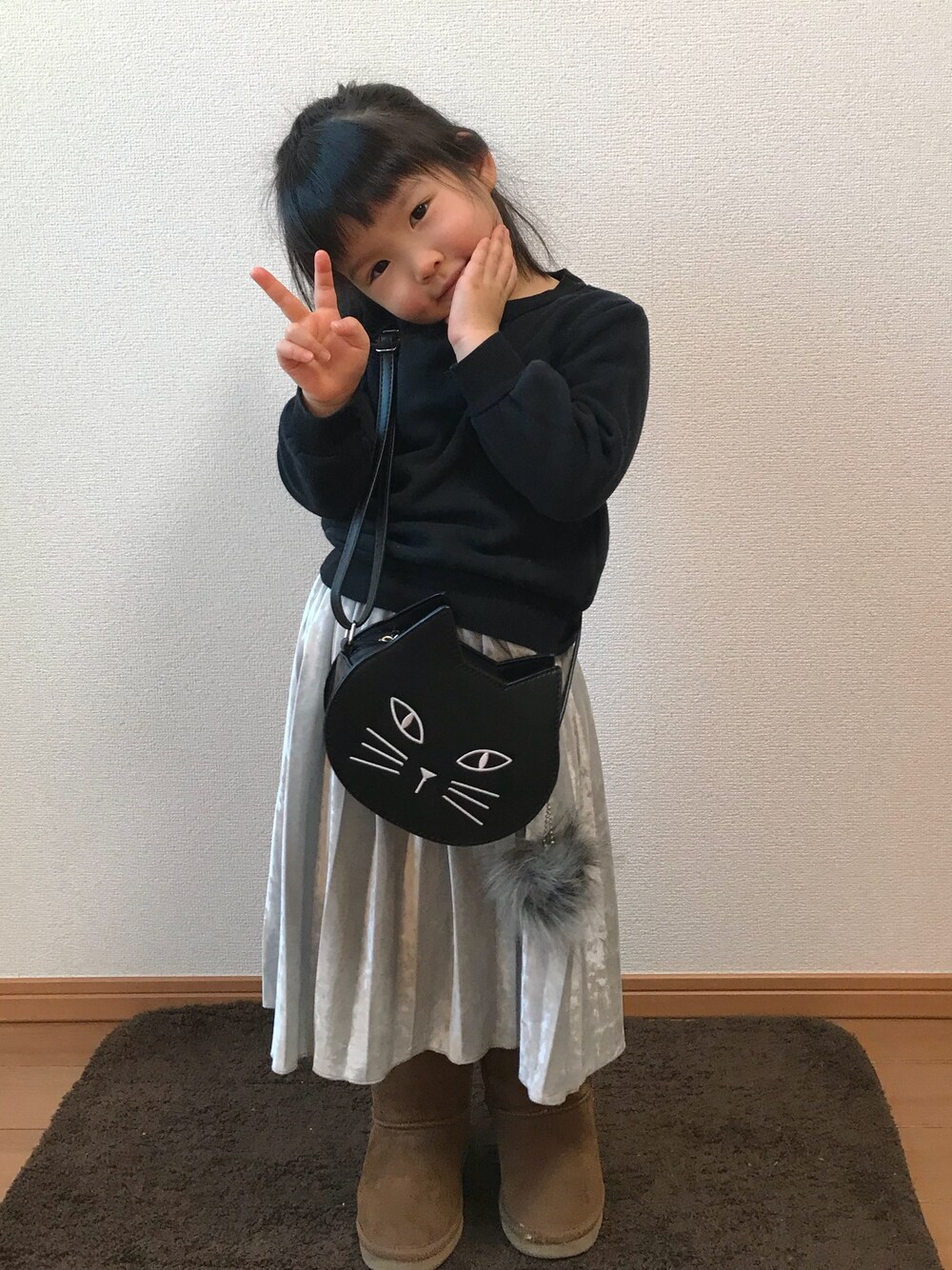 ずーっと気になってた、シルバーベロアのプリーツスカートでシンプルコーデ🤩 いや〜これ好き!丈感絶妙〜っ👍🏻✨ トップスはもっとオーバーサイズでもバランスよかですね。 これの大人サイズあったら自分用に欲しい。 160も作ってくれないかなー。