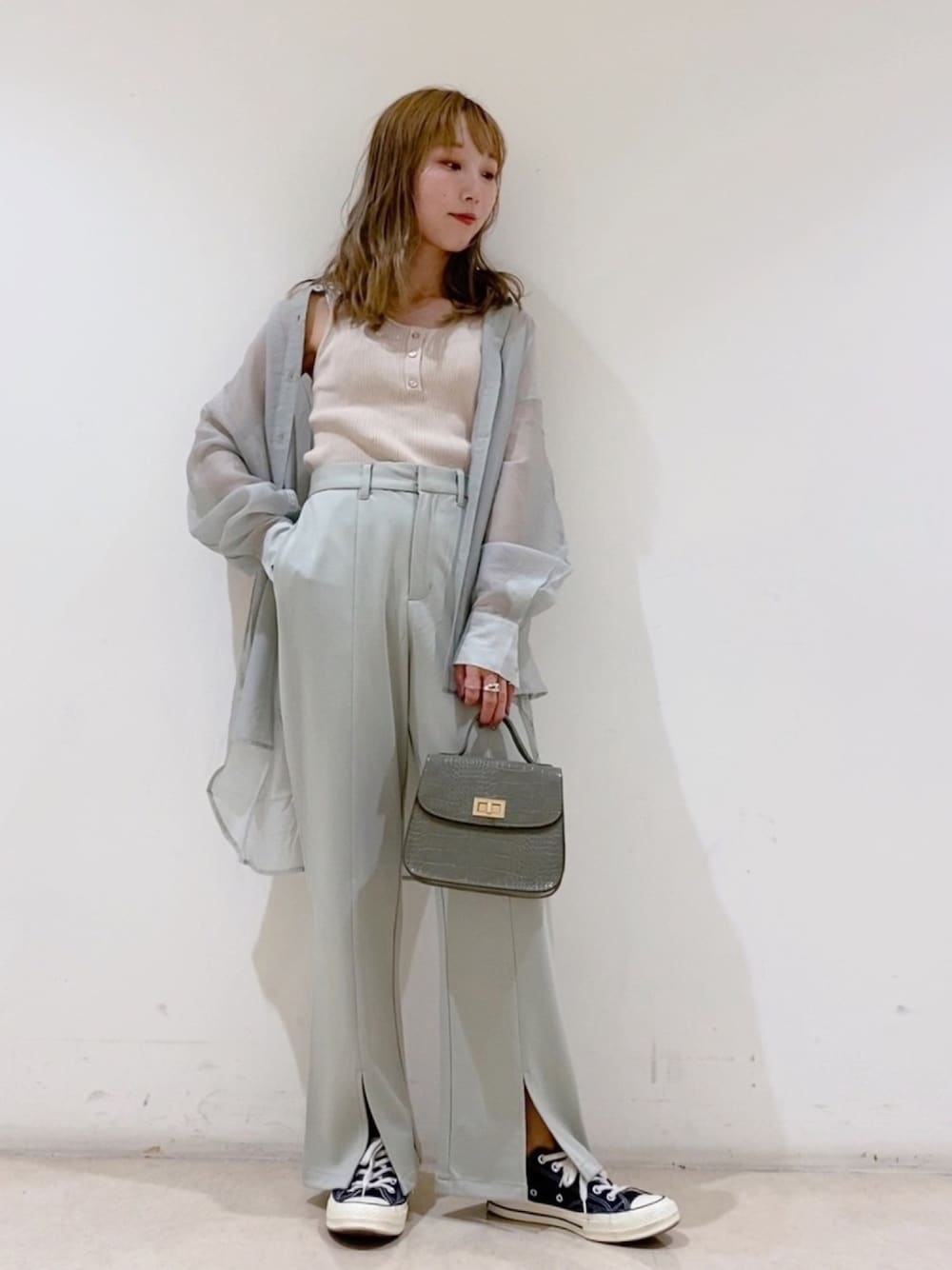 インスタでも大人気だった こちらのシアーシャツとスリットパンツの セットアップ風コーデ😻 わたしもブラウン狙ってます🔥