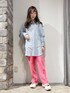春らしいカラー×カラーの組み合わせ🥣🌸 ビビットカラーをボトムスに持ってくるのがポイントです💡 シャツは程よく透け感もあり可愛いです🐰