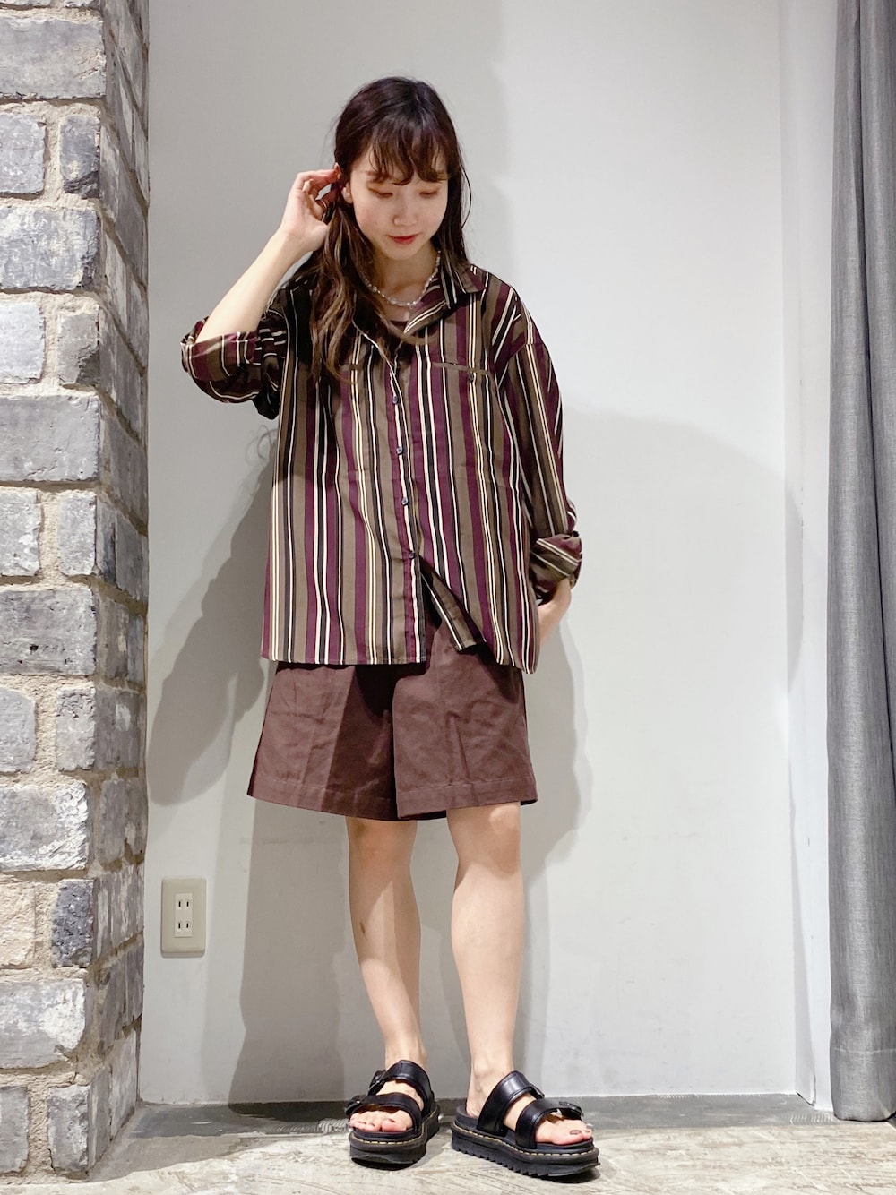 ブラウンで統一感出した 夏のシャツコーデ🤎🐻 シャツはシアー素材でゆったりめのシルエットなので羽織りやすいです🙌🏻 ショートパンツもリネン素材で履くだけで季節感も出ておすすめ🤍