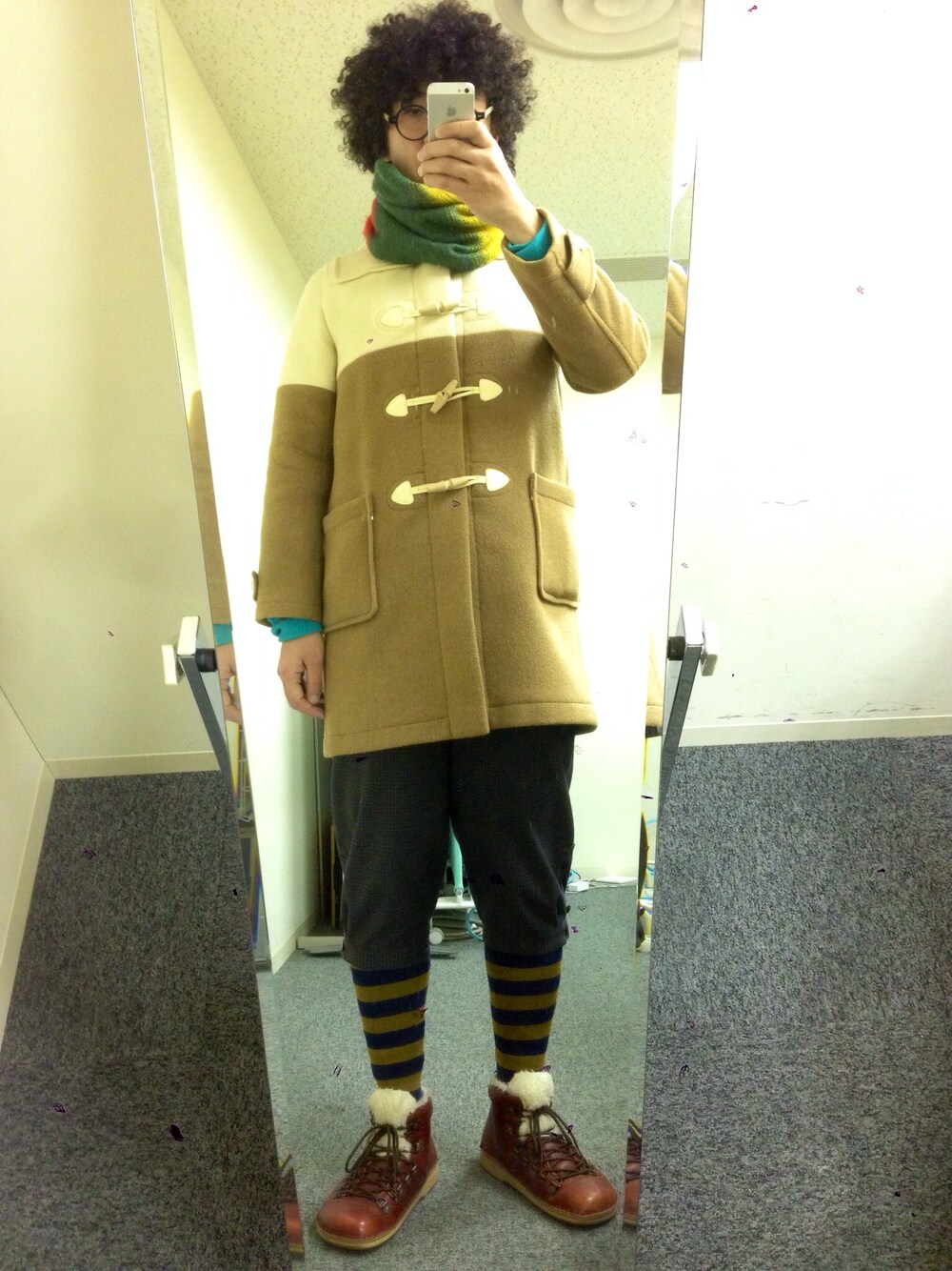 もじゃのダッフルコート「バイカラーダッフルコート」を使ったコーディネート