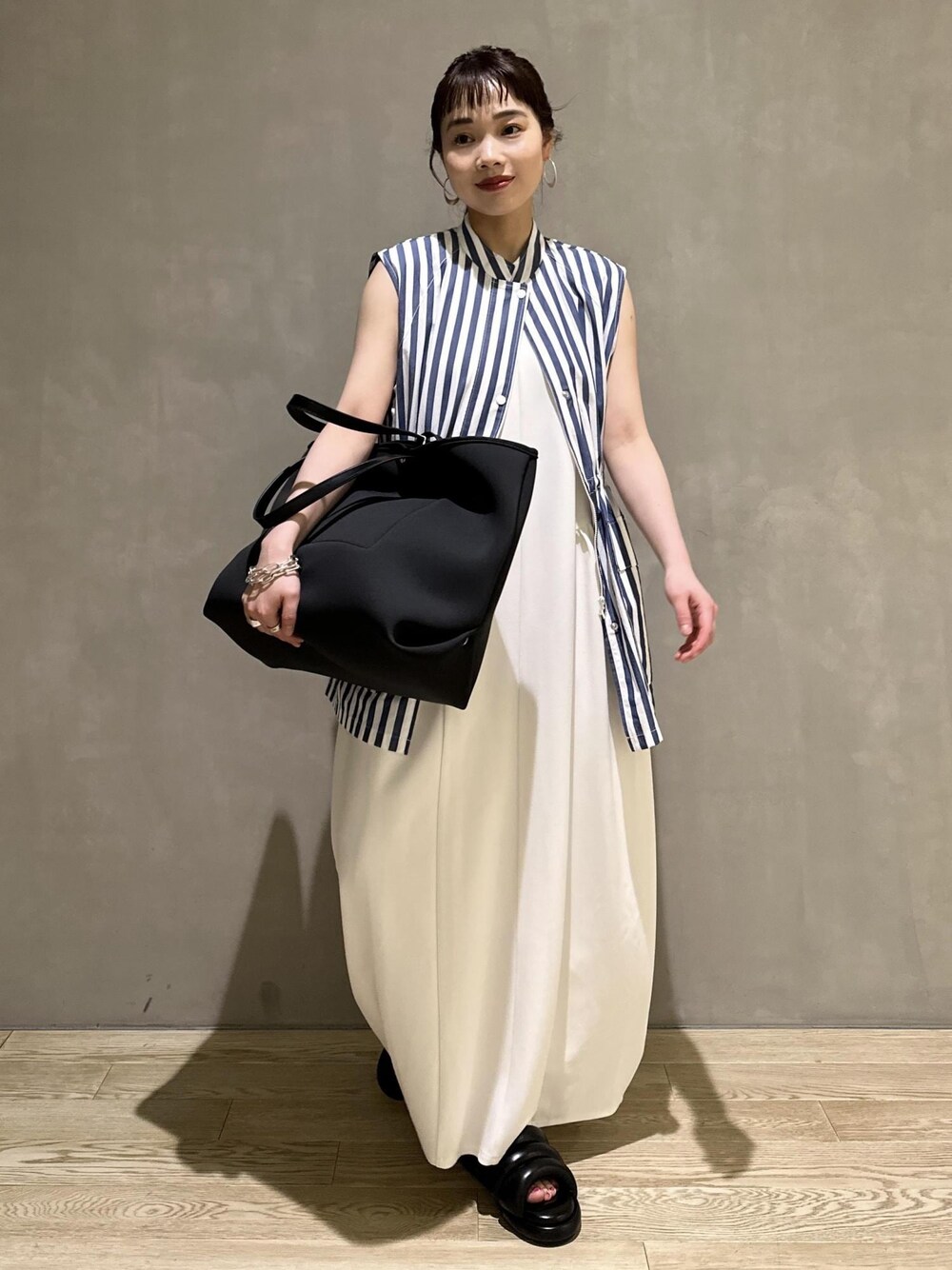 AKARI(ADAM ET ROPE' 心斎橋PARCO)のトートバッグ「【A4対応】ネオプレンマルチトートバッグ」を使ったコーディネート