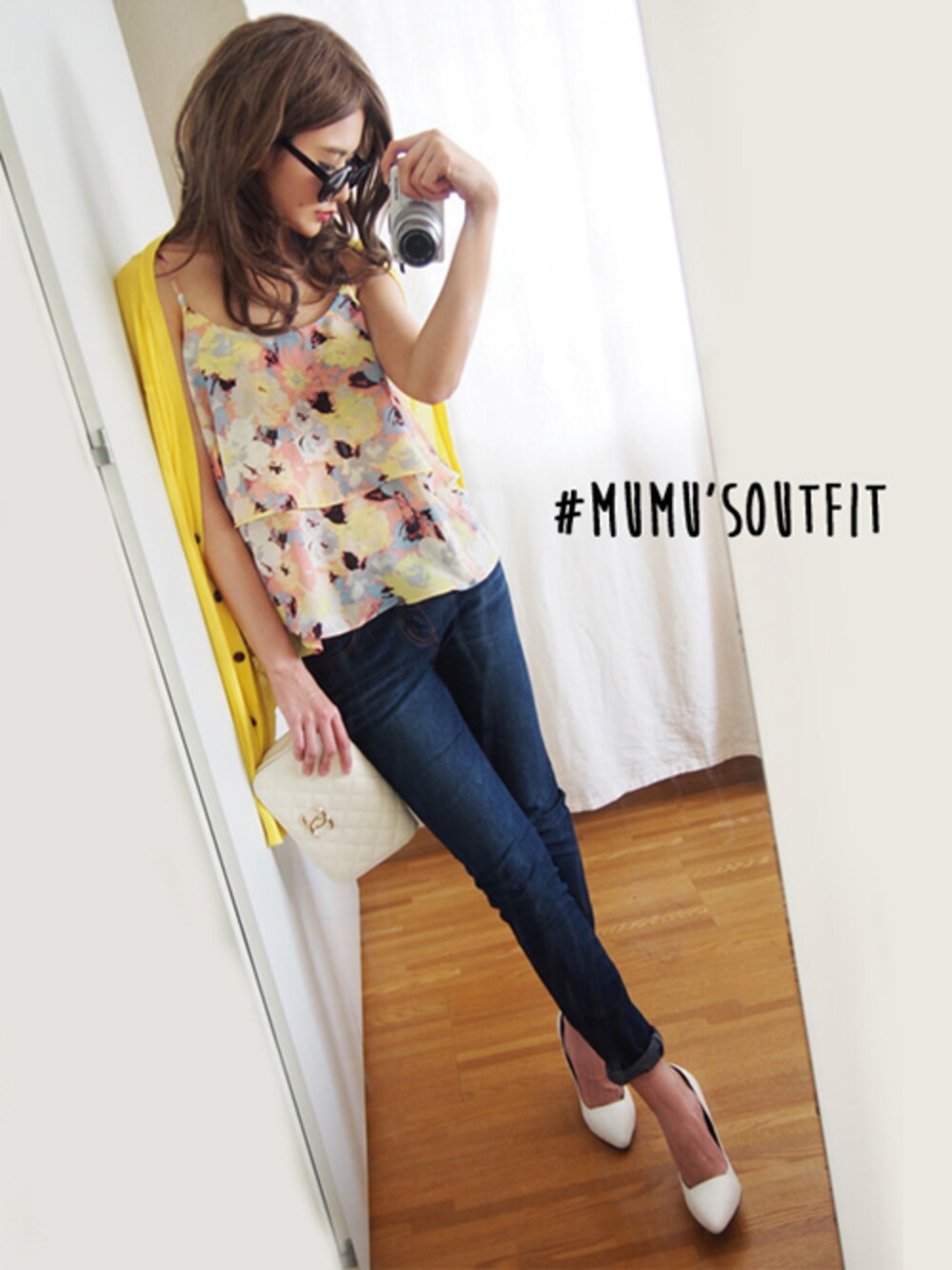 The Secret Bean のふんわりとしたシルエットのキャミソールにタイトなシルエットのスキニーデニムを合わせました* カーディガンは去年購入したものです。