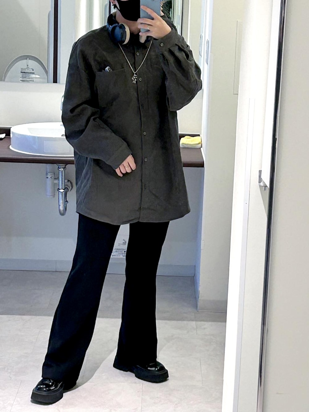 全身SHEINコーデ グレーのオーバーサイズシャツ、素材が良くておすすめ