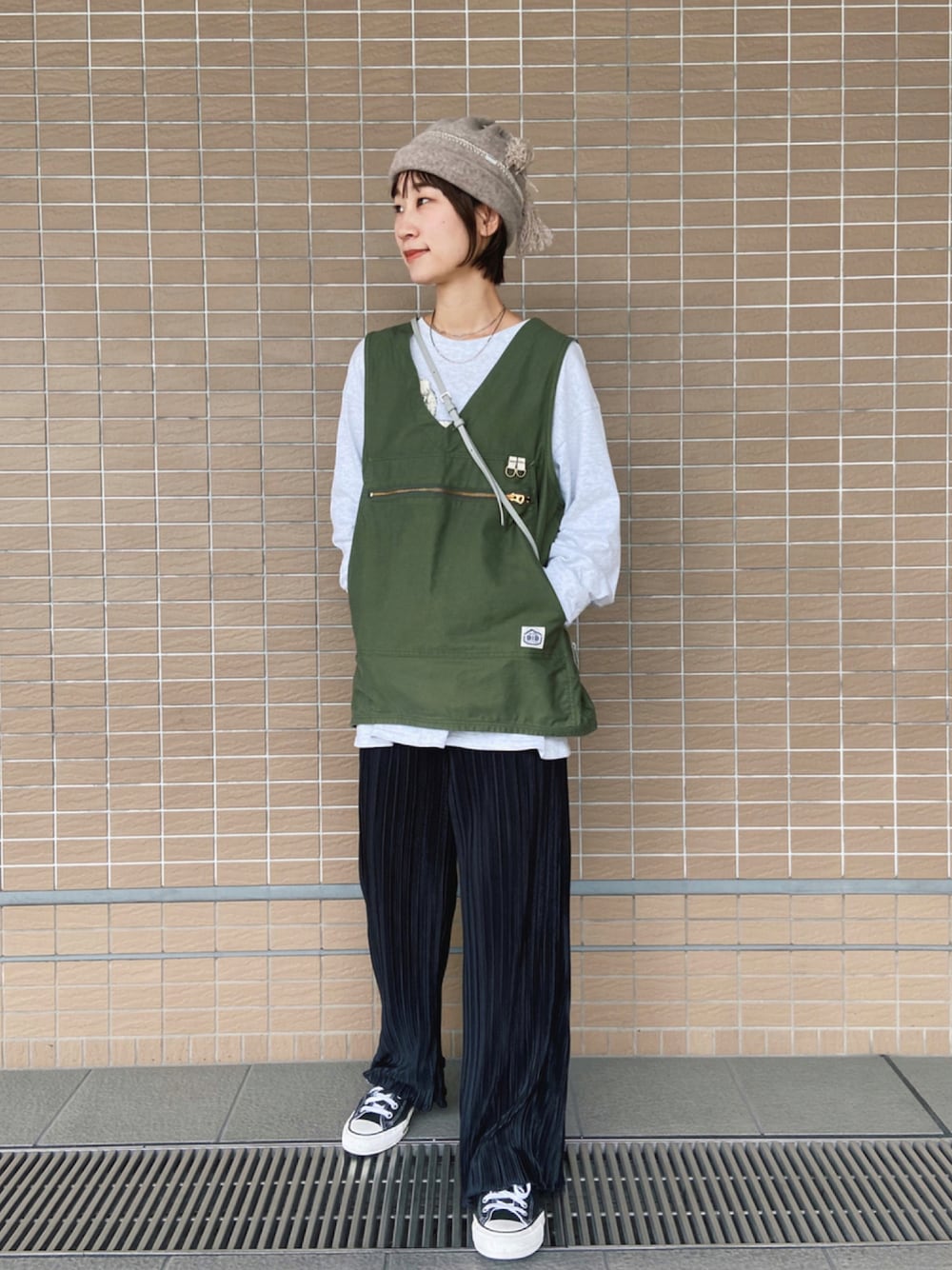 ご覧いただきありがとうございます。 いいね、お気に入り嬉しいです♪ ゆったりお散歩コーデ🚶♀️ ポケットが大きいワークなベストと肩掛けできるiPhoneケースがあれば手ぶらで楽ちん💯 帽子☞ ブランケットステッチとタッセル付きの紐がアクセントになったデザイン。 気分に合わせて折り返し部分の長さを変えれます✨ タッセルがゆらゆら揺れてかわいいですよ〜😆
