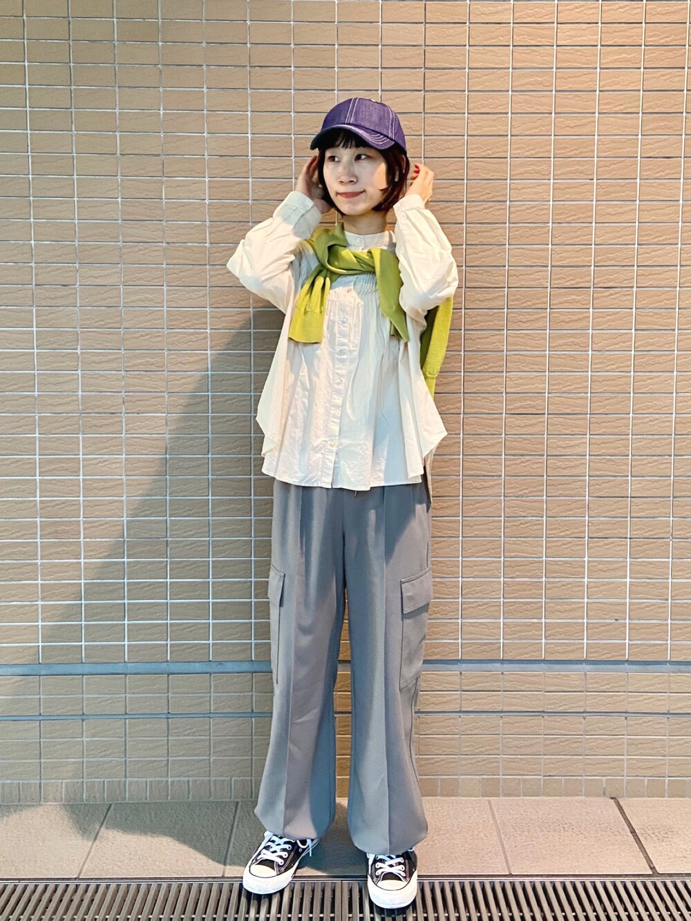 おはようございます。 いいね、お気に入りありがとうございます♡ オーガニックコットンデニムを使用した6パネルのキャップ🧢 シルエットは広すぎず、深すぎない 丁度良いベーシックな形です。 デニムは洗えば洗うほど色が落ちて 経年変化を楽しめるのでだんだんと愛着が湧いてきそうですね☺️ ふわっとしたベージュのシャツと トレンドのカーゴパンツに 差し色で黄緑のカーディガンを添えて🍏 デニムのキャップを合わせて 《大人カジュアルCAPコーデ🧢》