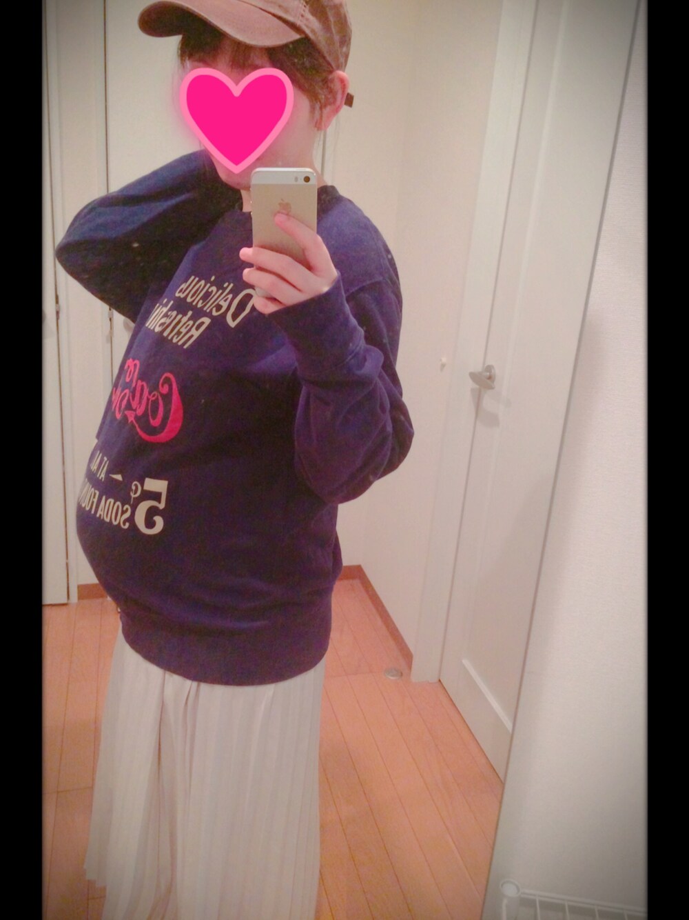 さすがに9ヶ月のお腹目立ちます🤰!! コーラのスエットはゆったりめのLサイズなので お腹ボーン!でも大丈夫🙆