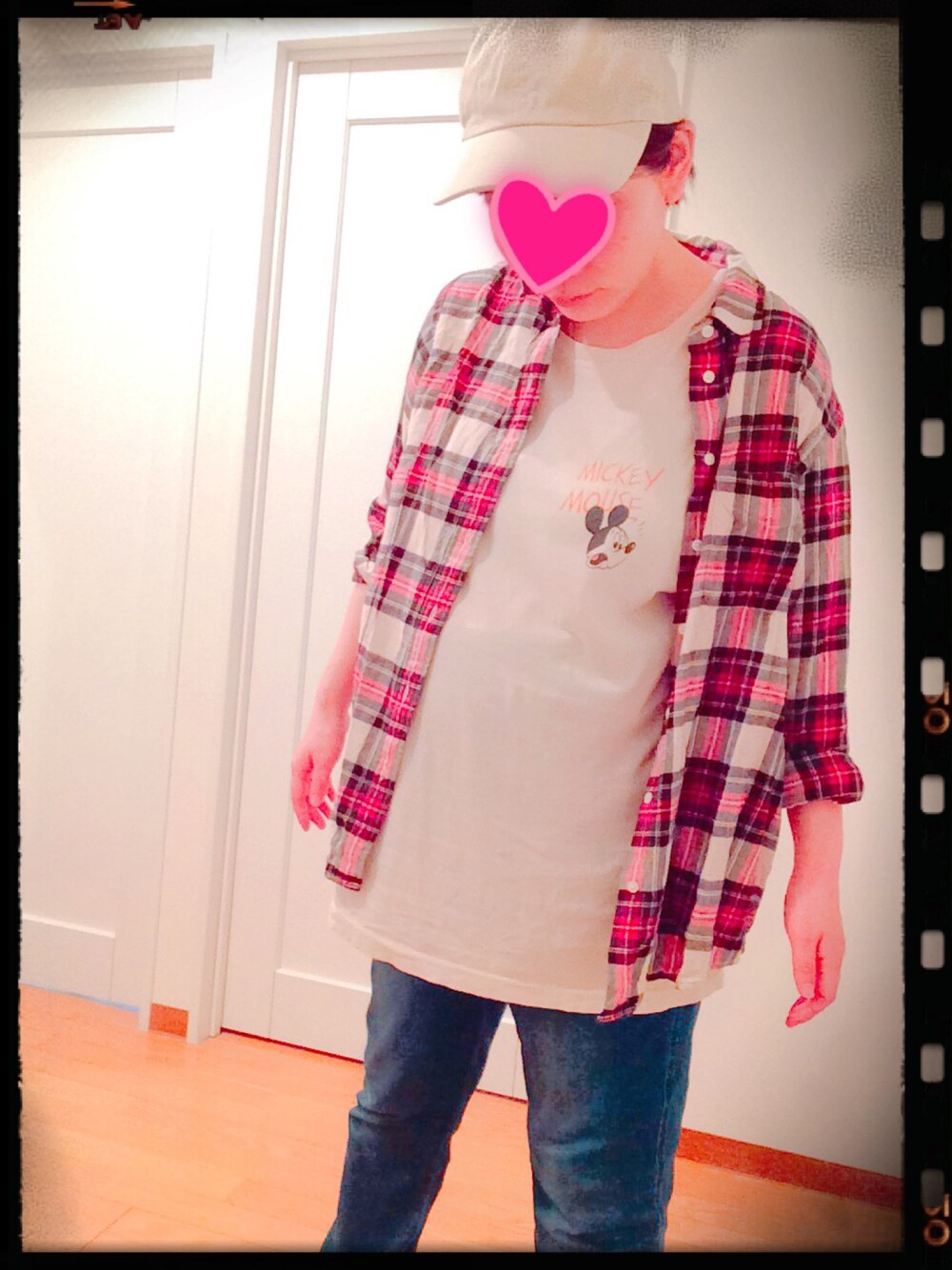 ミッキーTはメンズのXLなのでビッグサイズです。 昨日より気温さがって涼しくなりました☺️ 気温差があると服装コロコロ変わりますね〜