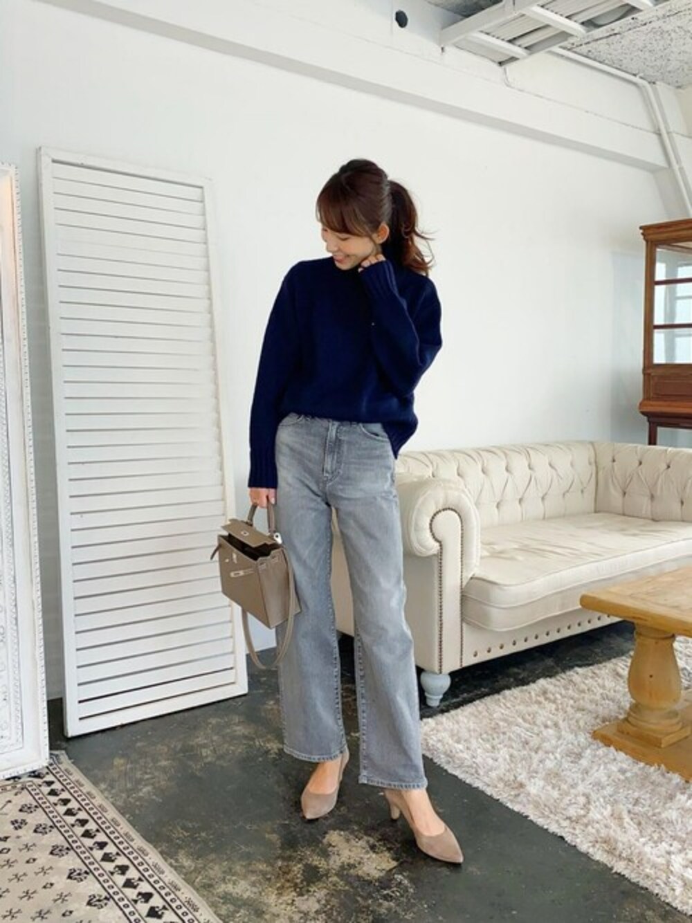 @shizuka.watanabe様、ご紹介ありがとうございます。 私には珍しいストレートのデニムは @munich_official だよジーンズ ・ グレーも珍しいよね💗 ・ ・ デニムにニットのシンプルな感じは最近好き!