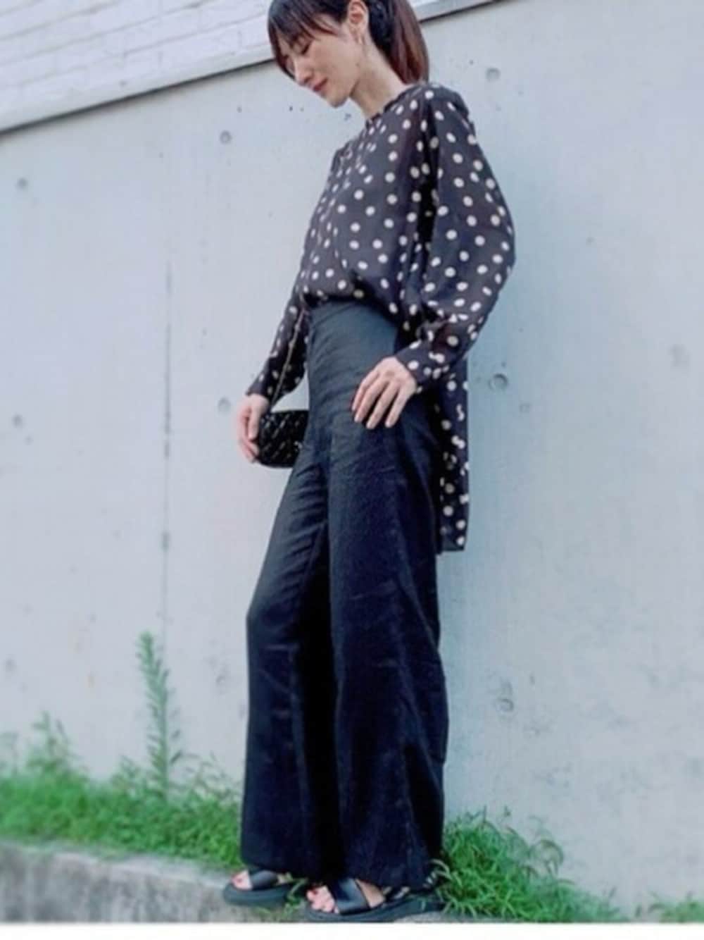 @maeyuka様、ご紹介ありがとうございます。 大きめのドット! 黒にベージュのドットが大人仕様で気に入ったブラウス。 @munich_official オリジナルプリントバックギャザーブラウス。 前はスッキリ後ろは緩めのシルエット、動いている時に揺れる表情がかわいいです。