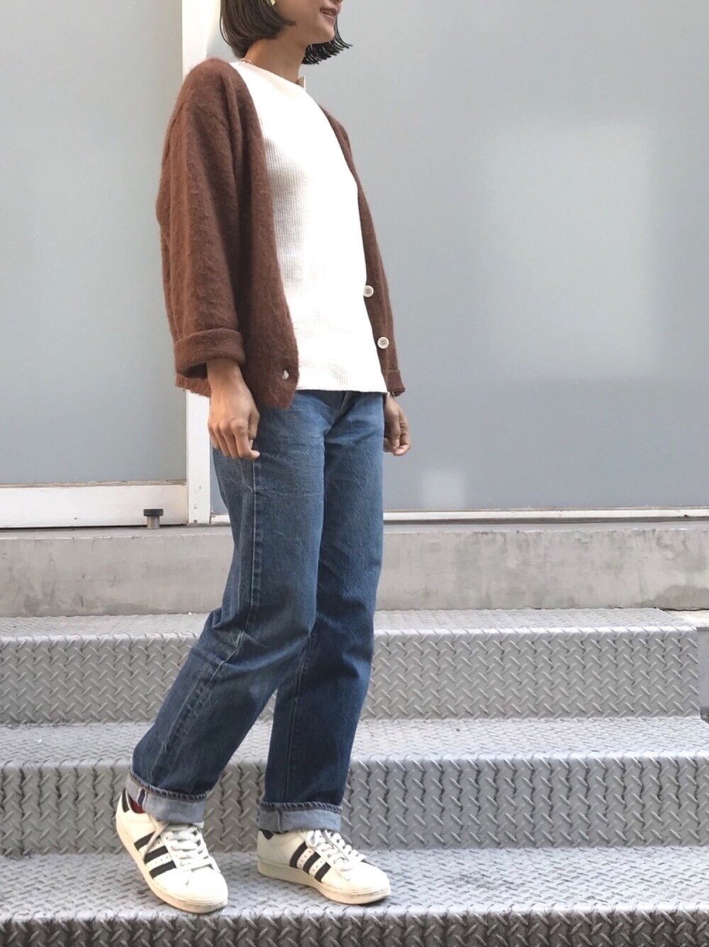 moshpitの今津です 忙しいです。忙し過ぎていつも毎回必ず行っている某アーティストのライブのチケットを取り忘れてしまいました。有給休暇って取るタイミングが良く分からなくて、特に予定もないのに家でゴロゴロするだけの為に休むのもなんだか気が引けて、いつからかライブの時は何があっても休むって決めました。この時くらいしか有給休暇を取る理由がないんです私。なのでこれ逃したらいったいいつ休めば良いの状態です。皆さんどんな予定で休んでるんですかね?誰に言っても恥ずかしくない、優等生な理由とかあるんですかね? って問いかけても誰もコメントくれないのは分かってますが、めげずにこのスタイル続けます。 使えるインナー。キーネックのタンクトップは粗野な雰囲気のナチュラルカラーかイチオシです。