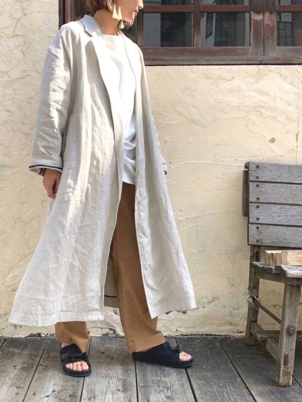 san🦔(Munich)のチェスターコート「リネンオックスサイドスリットチェスターコート<スプリングコート>」を使ったコーディネート