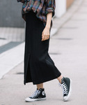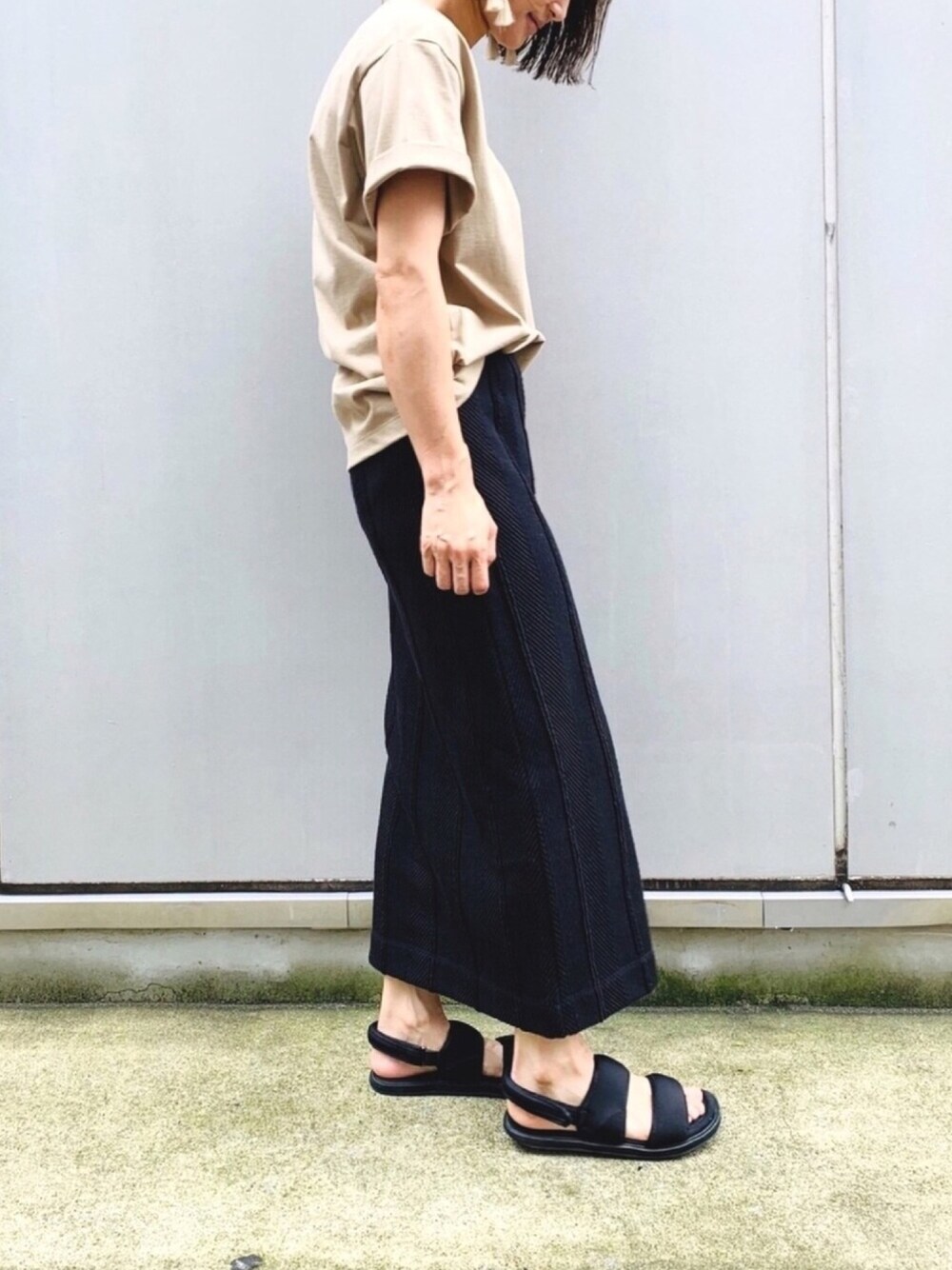 こんにちは 夏だ!Tシャツを着よう!だそうで。今週はTシャツweekです。新作のタイトスカートは立体感のあるヘリンボン柄の編み地がストライプ状になっているので、細見え効果抜群です。 そんな事よりここのコンクリの苔酷いですね。数ヶ月前の写真を見返してみたらこんなんではなかったのですが、、、。知らない間に見えない菌が繁殖しているのですね。恐るべし梅雨。 それではまた