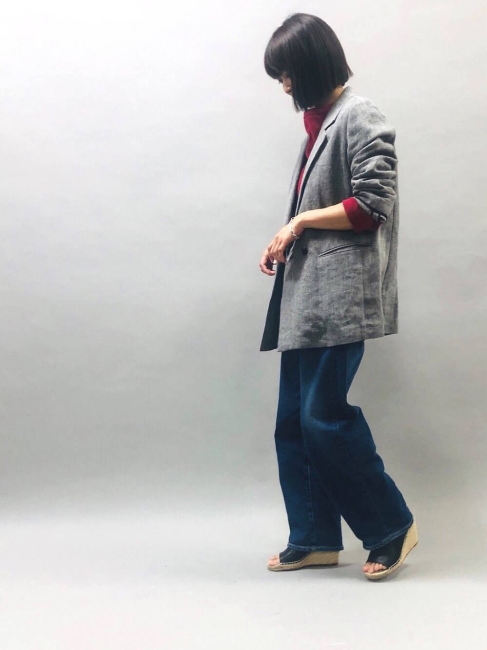 san🦔(Munich)のテーラードジャケット「ヘリンボーンリネンテーラードジャケット」を使ったコーディネート