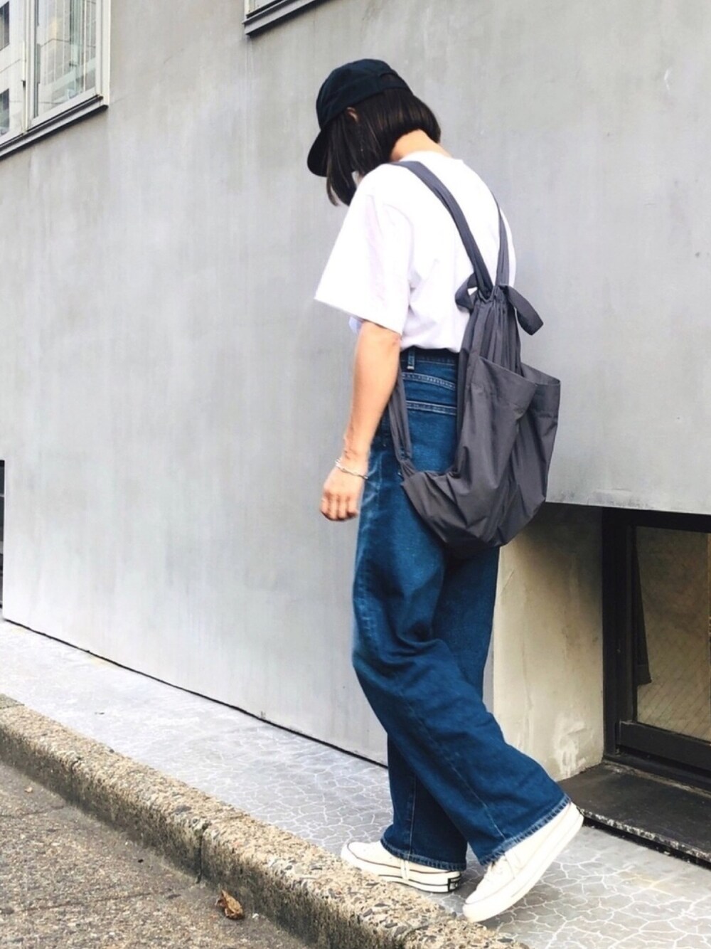 san🦔(Munich)のデニムパンツ「ブリーチストレッチデニムワイドストレートパンツ」を使ったコーディネート