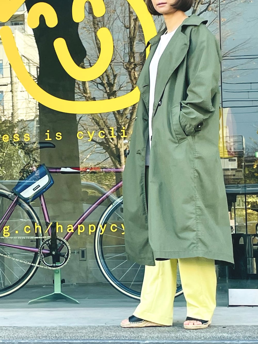 san🦔(Munich)のトレンチコート「ポリエステルコットンウェザーダブルブレストコート」を使ったコーディネート