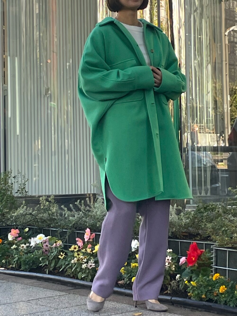 san🦔(Munich)のその他アウター「ウォームソフトダブルジャージビッグシャツアウター」を使ったコーディネート