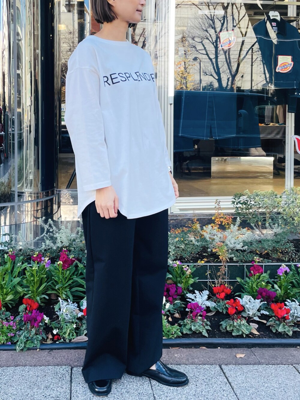 san🦔(Munich)のTシャツ/カットソー「ピグメントバイオコットンジャージロゴプリントTシャツ」を使ったコーディネート