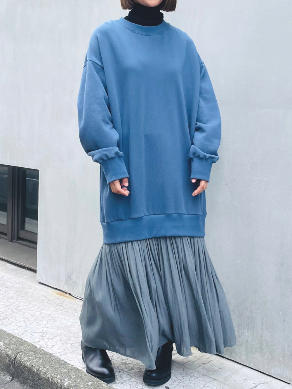 レイヤード風ワンピにシアータートルのレイヤード