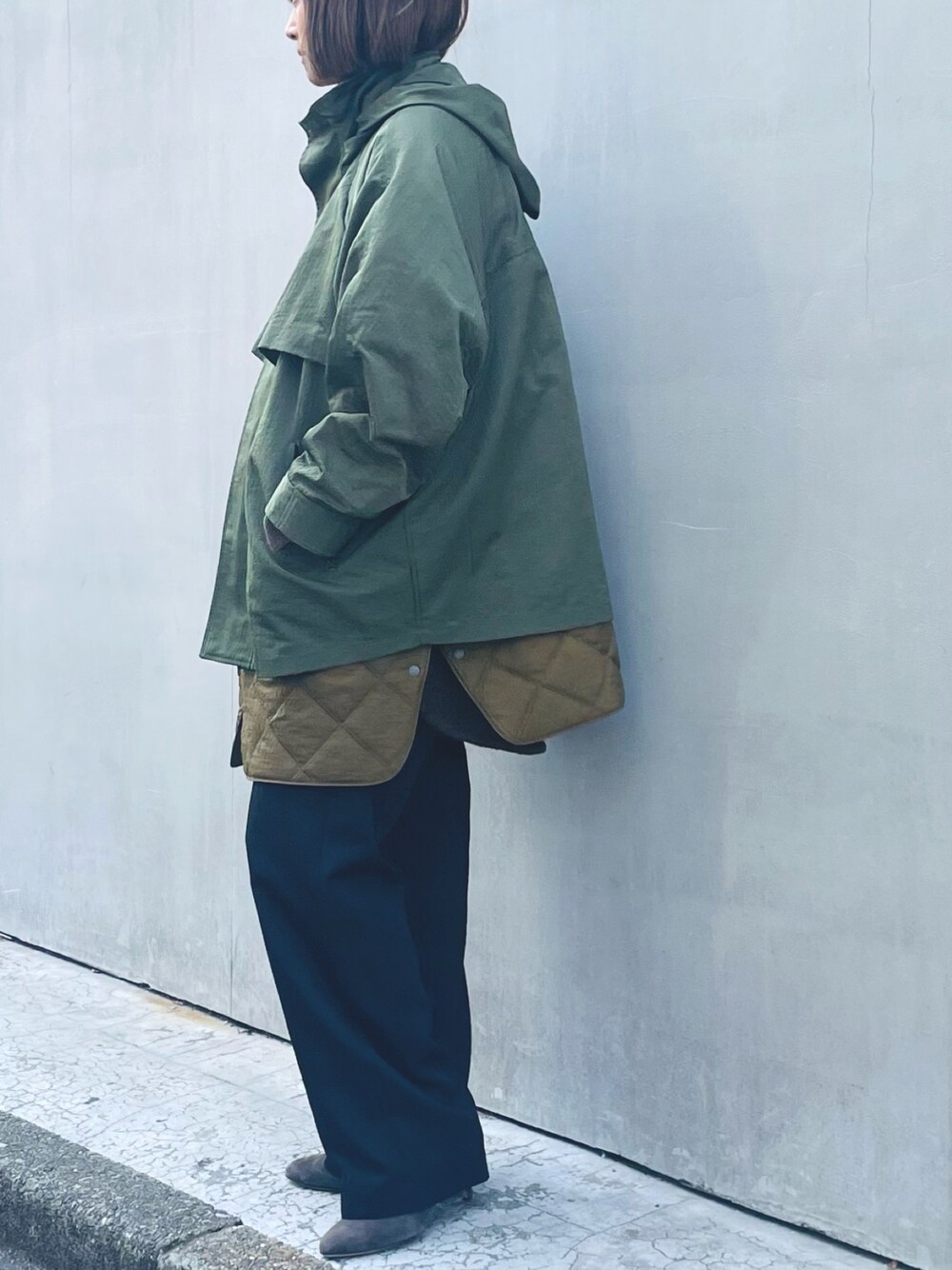 san🦔(Munich)のブルゾン「ナイロンツイル×キルティングタフタレイヤードブルゾン」を使ったコーディネート