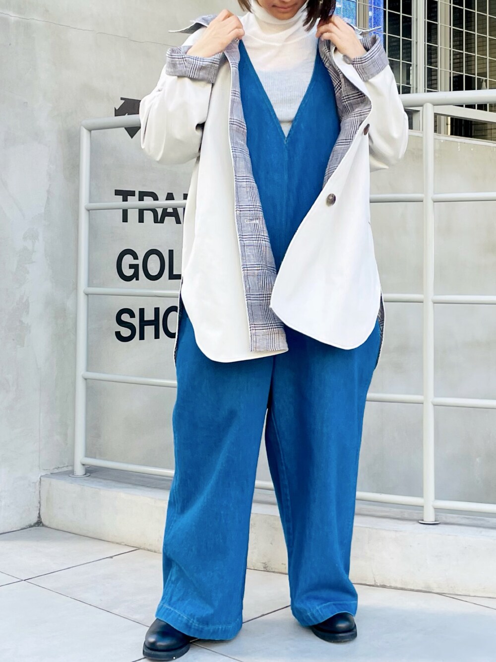 san🦔(Munich)のステンカラーコート「コットンツイル×リネンコットンチェックリバーシブルコート」を使ったコーディネート