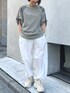 san🦔(Munich)のTシャツ/カットソー「コットンジャージ×タフタロールアップスリーブプルオーバー」を使ったコーディネート