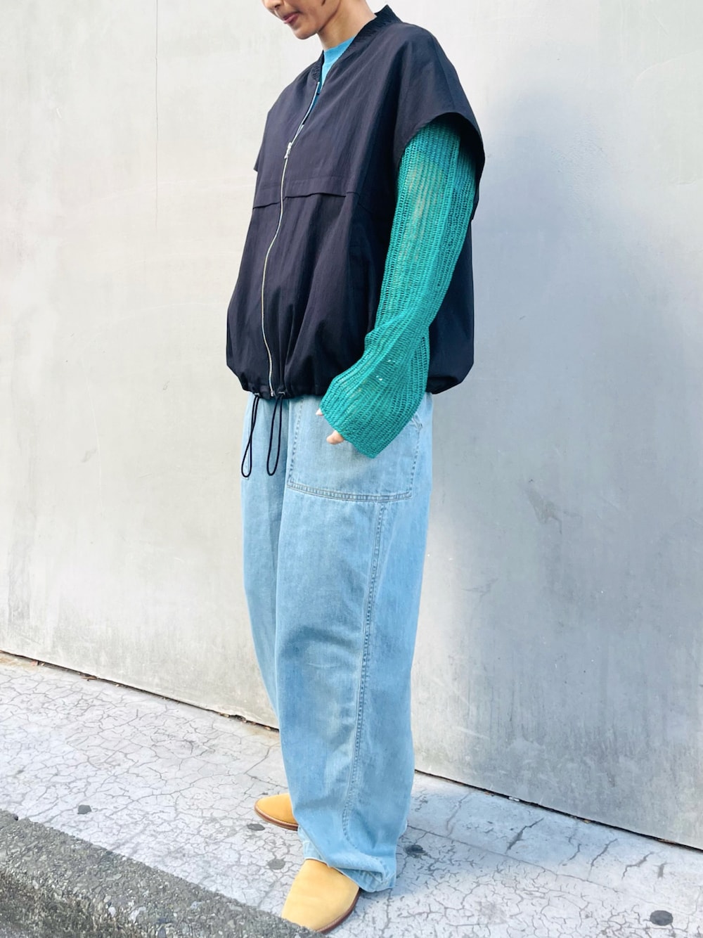 san🦔(Munich)のブルゾン「コットンナイロンタイプライタースリーブレスジップブルゾン」を使ったコーディネート