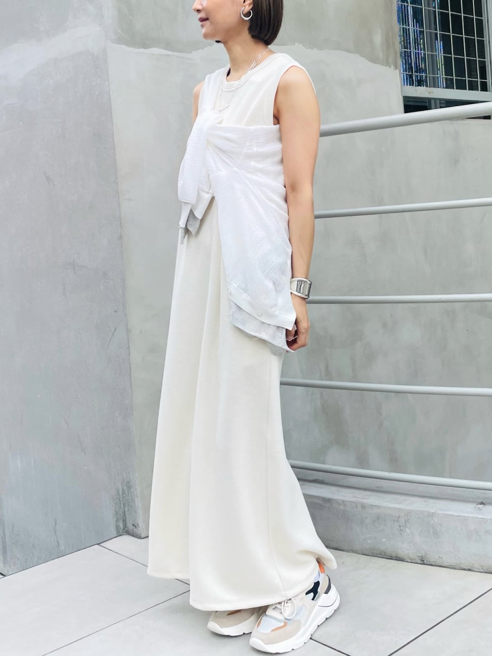 san🦔(Munich)のワンピース「【防シワ】【イージーケア】ダブルフェイスジャージマキシワンピース」を使ったコーディネート