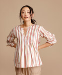 i_munichのシャツ/ブラウス「コットンキュプラストライプキーネックシャツ」を使ったコーディネート