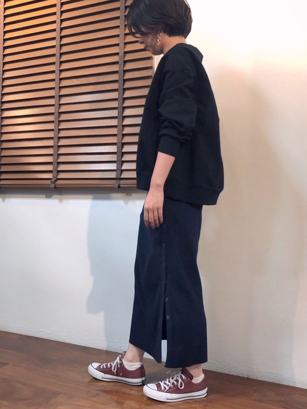 上下カットソーでラクチン💫 スカートのスリットは位置を自由に変えられるのでいろいろな着こなしが楽しめます!