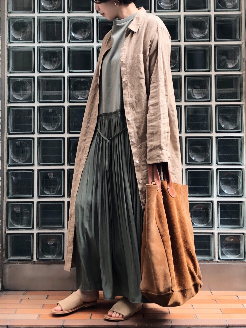 i_munichのシャツワンピース「40sフレンチリネンマキシシャツワンピース(リゾート マキシワンピース)」を使ったコーディネート