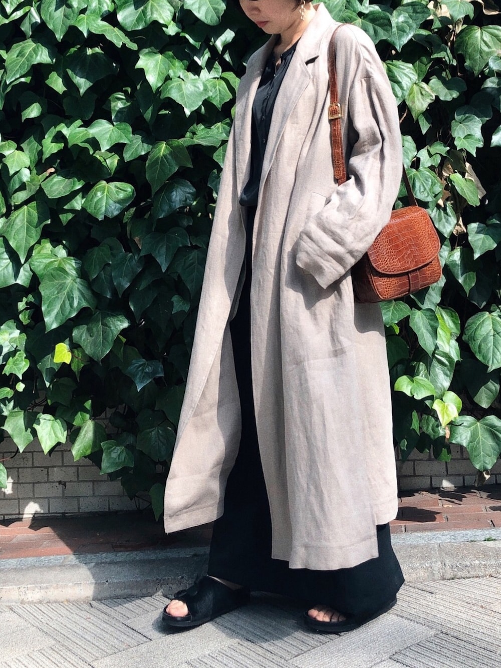 リネン特有のくたっとした 落ち感が大人っぽいスプリングコート🧥 大きめなサイズ感も新鮮です〜!