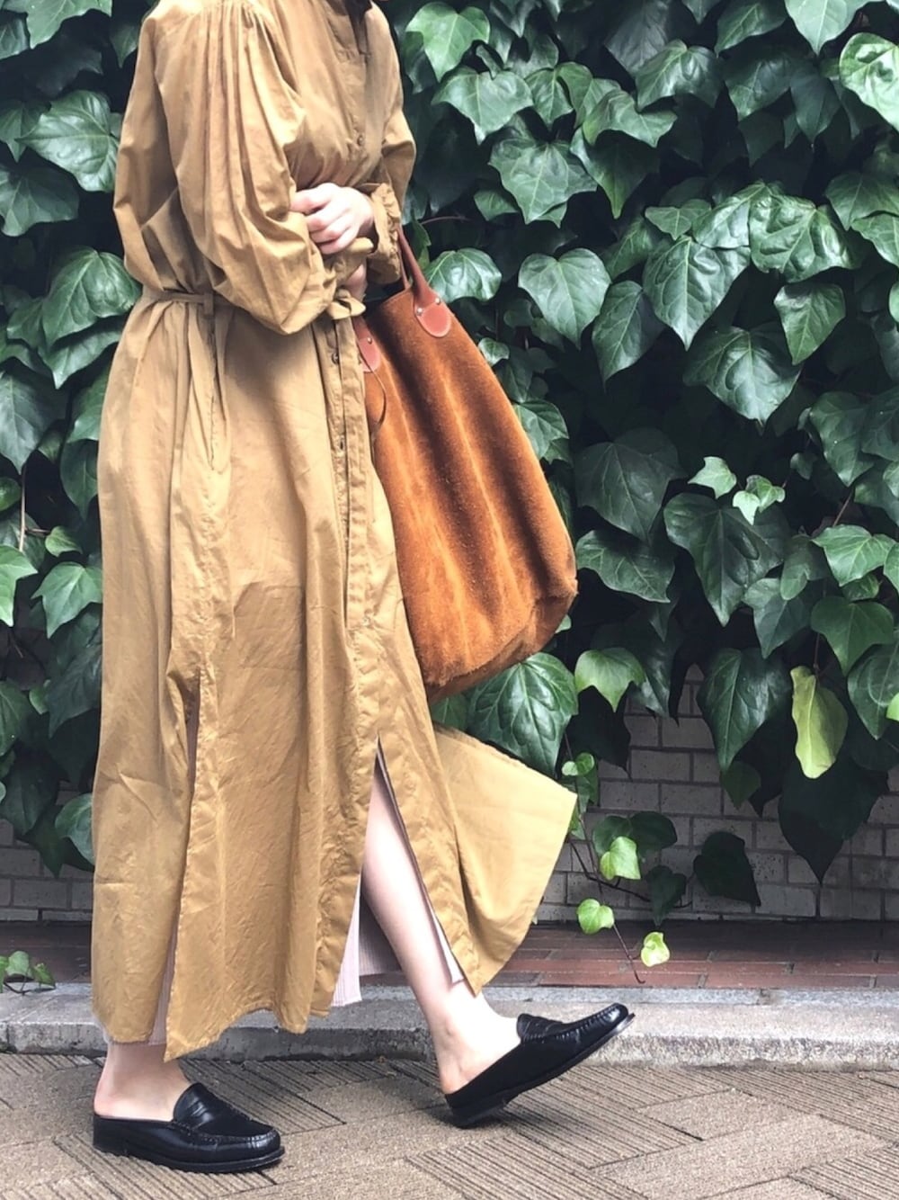 キャメルのシャツワンピは 羽織にも使える優秀なアイテムです👌