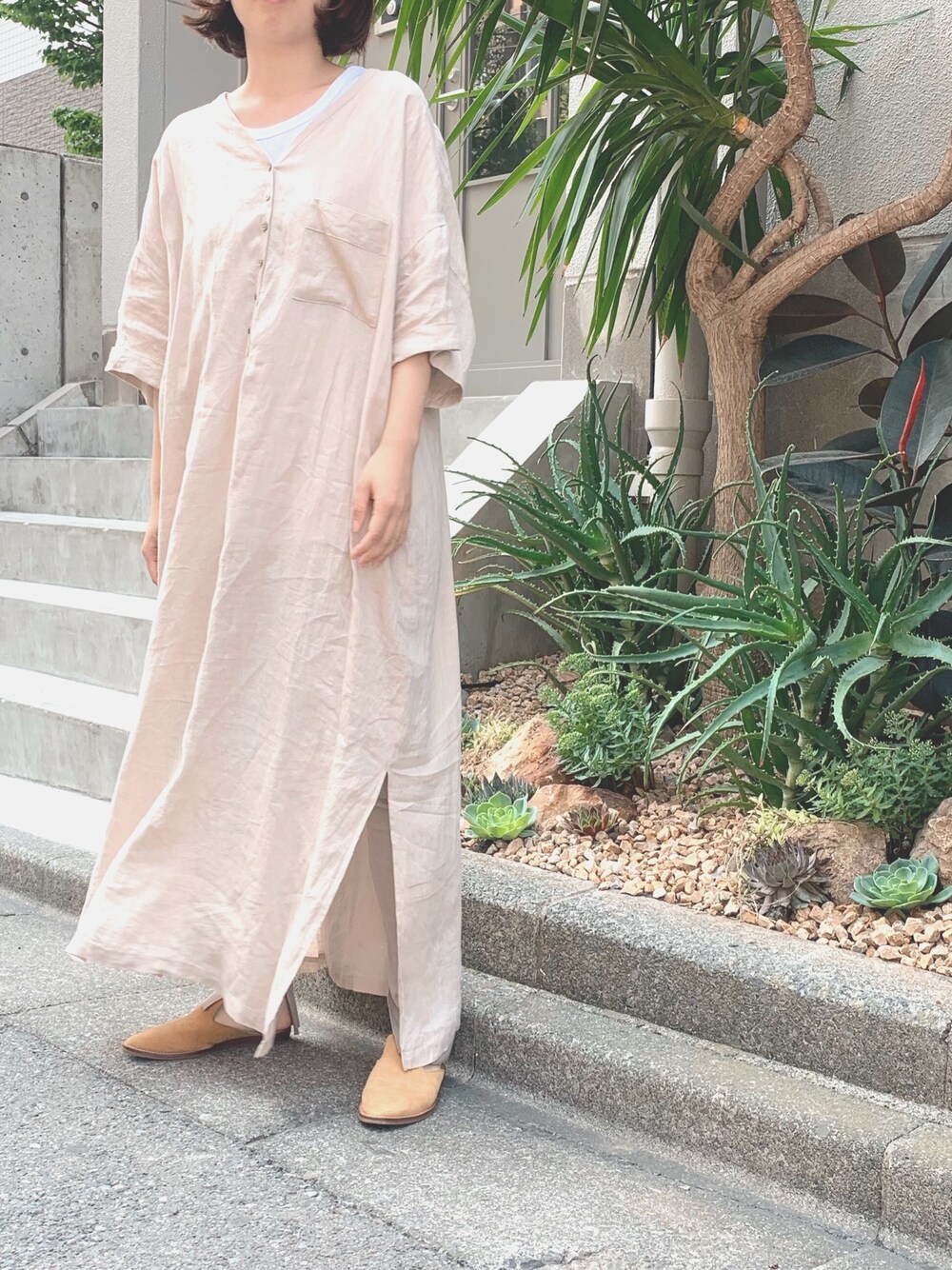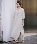 i_munichのワンピース「60sフレンチリネンヘンリーネックリラックスワンピース(リゾートマキシワンピース)」を使ったコーディネート