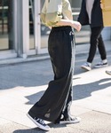 半袖始めました🌞 フレンチリネンのパンツは一見ワイドパンツに見えますが裾がほんのり広がったフレアシルエット📣 足を長く見せてくれる大人のカジュアルパンツです!