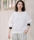 光沢感が綺麗なツイル素材にカットソーアイテムのようなリブを組み合わせたミューニックらしいプルオーバー。 ふんわりとしたシルエットが女性らしいアイテムです。