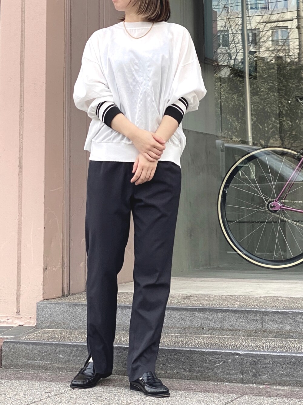 i_munichのシャツ/ブラウス「布帛×ニットリブラウンドネックプルオーバー」を使ったコーディネート