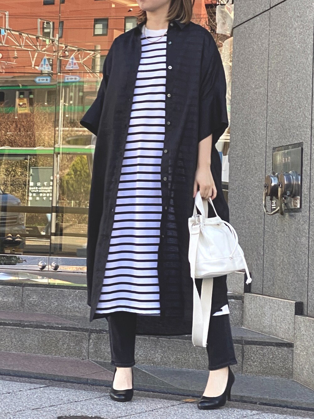 カットソーとニットを組み合わせたワンピースは一枚できてもレイヤードしてもコーディネートが決まるアイテムです 。