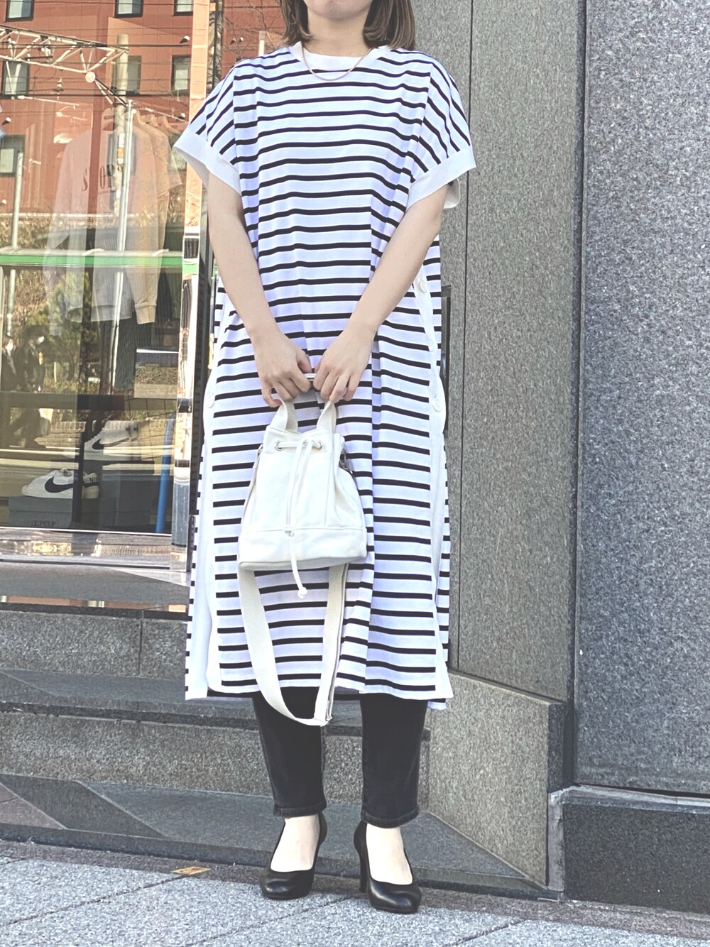 i_munich(Munich)のTシャツ/カットソー「コットンボーダースリーブレスロングトップス」を使ったコーディネート