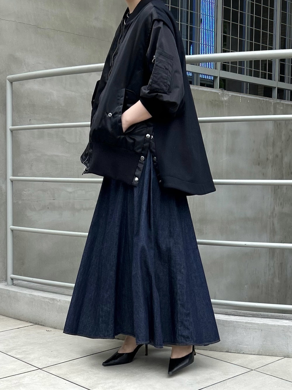 moni(Munich)のベスト「LIMONTAナイロン×ウォームジャージドッキングベスト」を使ったコーディネート